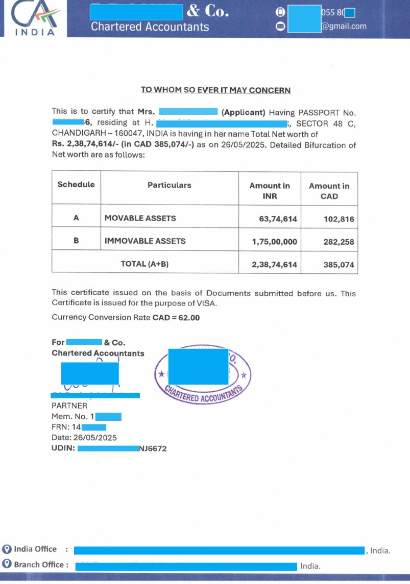 Do you need a Net Worth Certificate for VISA purposes? Legal Adda is the best consultant for Net Worth Certificates. We provide instant delivery of Net Worth Certificates to your location. A Net Worth Certificate is commonly required for VISA applications, embassy/consulate interviews, loans, and insurance purposes. We provide Chartered Accountant certified Net Worth Certificates with UDIN. A Net Worth Certificate is also known as a Wealth Certificate, Wealth Report, Asset and Liability Report, or Wealth Statement.